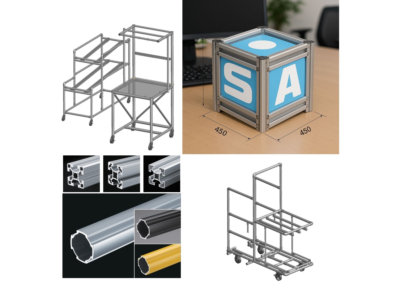 弊社では、アルミフレームやグリーンフレームを活用したオーダーメイドの台車・作業台を製作しております。市販品ではサイズや仕様が合わない場合でも、現場のレイアウトや用途に合わせて自由に設計・加工が可能です。